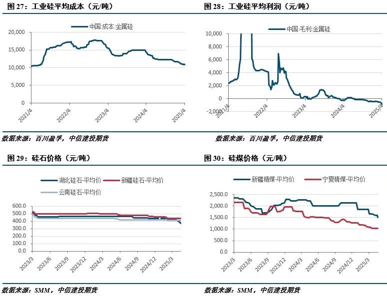 工业硅生产成本延续下行,近期硅石、硅煤、石油焦均出现不同程度的降价,且西南陆续进入平水期,电价有望下调。不过,行业利润仍在快速下滑,工业硅现货价格下行较快,行业亏损面扩大。